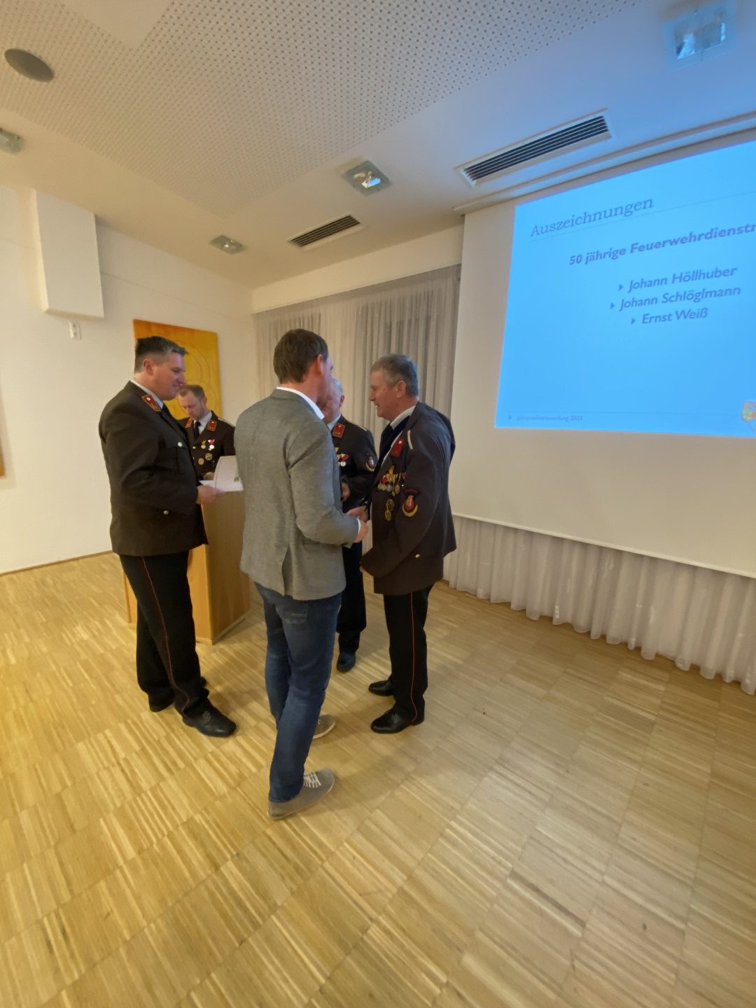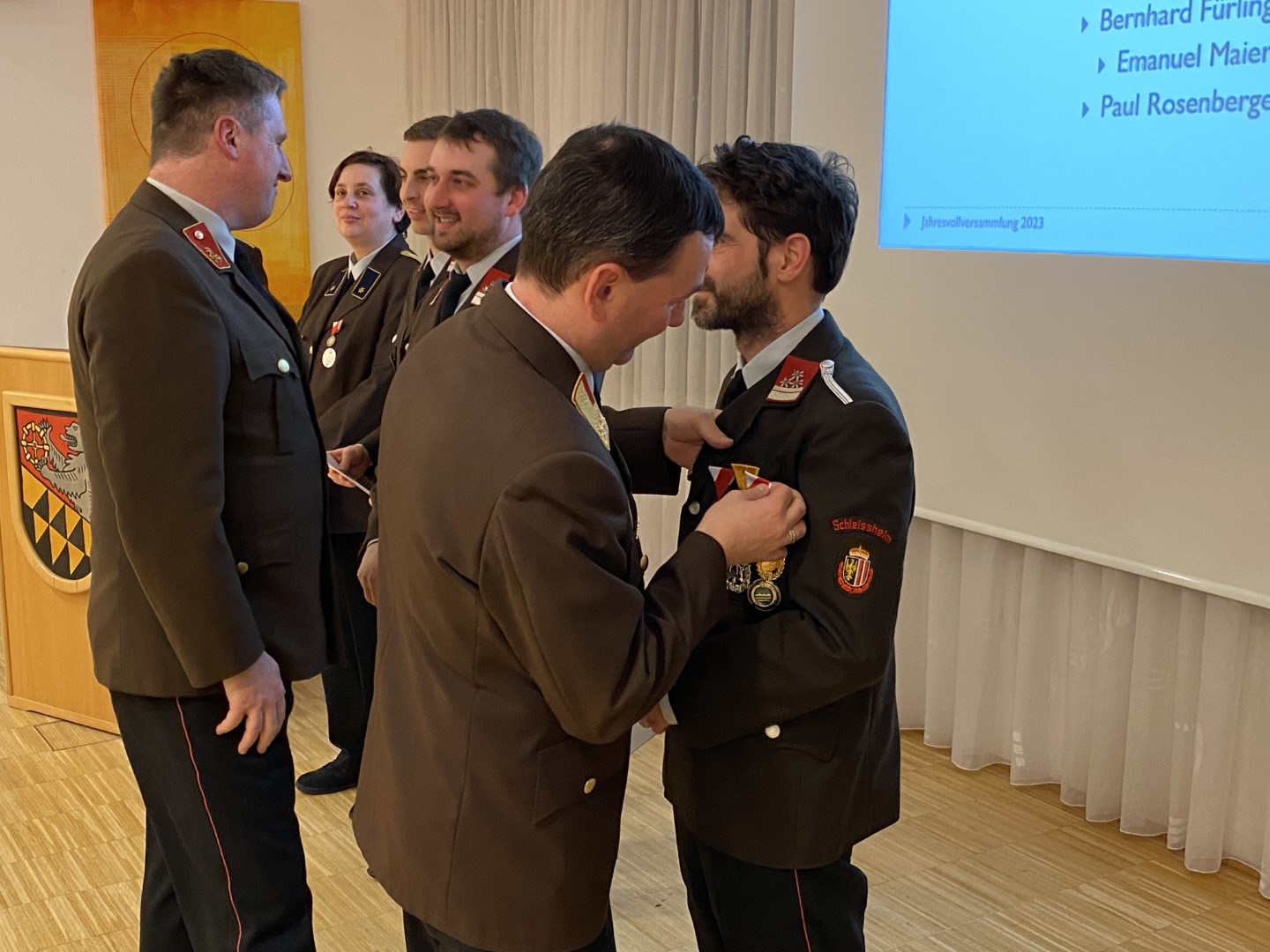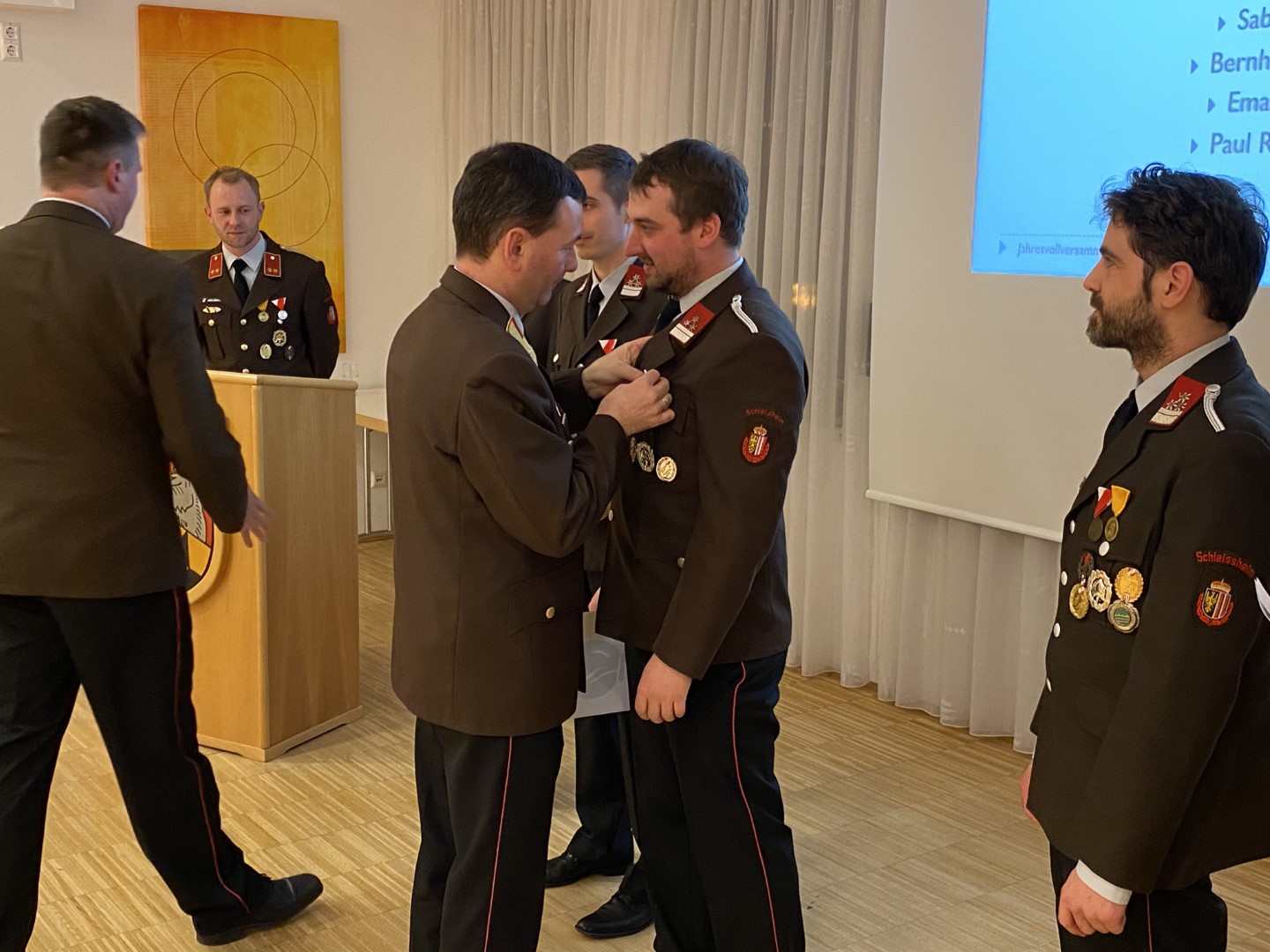 Am Freitag, den 17. Februar, fand die alljährliche Jahresvollversammlung für das Berichtsjahr 2022 der FF Schleißheim statt. Im Jahr 2022 rückte die FF Schleißheim zu 38 Einsätzen aus. Diese sind in 3 Brand- und 35 technische Einsätze aufgesplittet. Die Feuerwehr Schleißheim leistete im Jahr 2022 insgesamt rund 7.800 freiwillige Stunden. Damit auch bei Einsätzen professionelle Hilfe gewährleistet wird, wird ein Großteil der geleisteten Stunden in den Bereich der Aus- und Fortbildung gelegt. Im Zuge der Vollversammlung freuten wir uns besonders, da wir unseren Kameraden Gerald Fürlinger angeloben durften. Kommandant Patrick Pötscher sprach auch wieder Beförderungen aus: Gerald Fürlinger zum Feuerwehrmann, Daniel Wimmer wurde zum Hauptfeuerwehrmann, sowie Bernhard Hadringer zum Hauptlöschmeister ernannt. Für die vielen Jahre im Dienste der Feuerwehr erhielten einige Kameraden eine Auszeichnung in Form einer Medaille und Urkunde. Für 50 Jahre Mitgliedschaft bei der FF Schleißheim erhielten unser Kameraden Johann Höllhuber und Schlöglmann Johann die 50-jährige Feuerwehr-Dienstmedaille. Für 40 Jahre Mitgliedschaft Georg Thallinger die 40-jährige Feuerwehr-Dienstmedaille. Emanuel Mayer erhielt die 25-jährige Feuerwehr-Dienstmedaille für 25 Jahre Mitgliedschaft. Unsere Kameraden Paul Rosenberger, Emanuel Maier, Sabine Spitzer und Bernhard Fürlinger wurde die Feuerwehr-Verdienstmedaille des Bezirkes in Bronze überreicht. Wir gratulieren allen Kameraden und Kameradinnen recht herzlich zu ihren Beförderungen, Ehrungen und Auszeichnungen!
