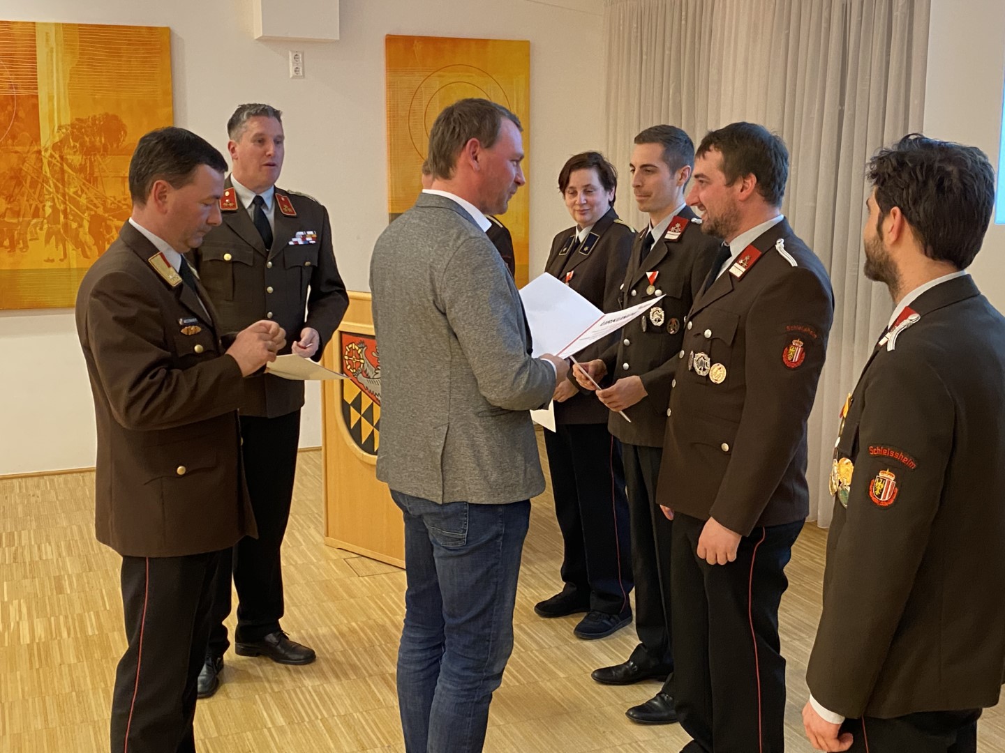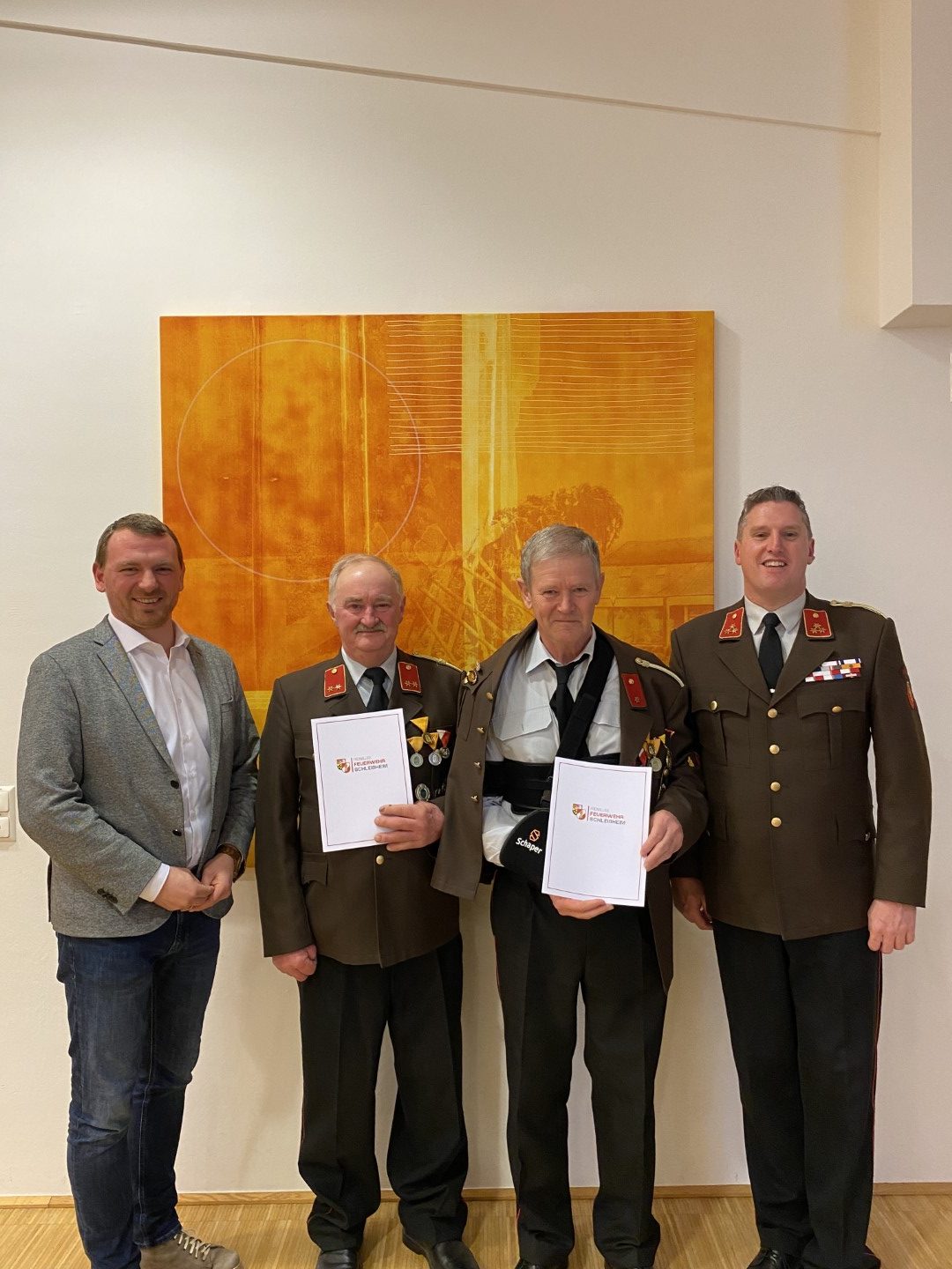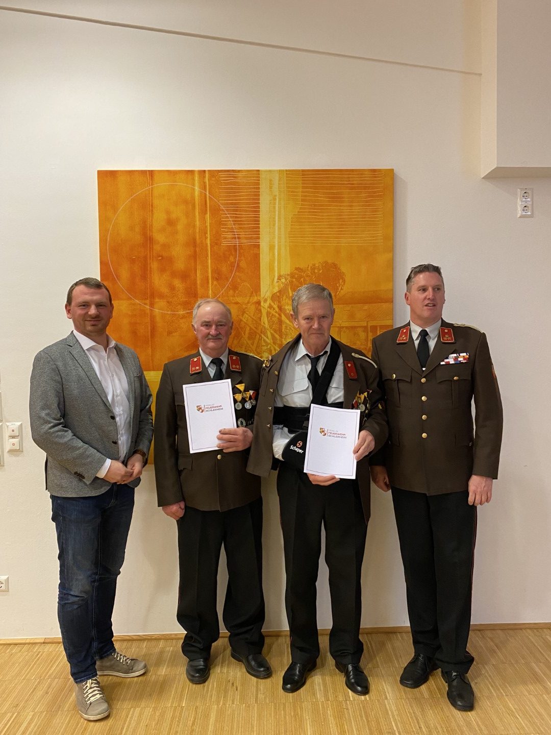 Am Freitag, den 17. Februar, fand die alljährliche Jahresvollversammlung für das Berichtsjahr 2022 der FF Schleißheim statt. Im Jahr 2022 rückte die FF Schleißheim zu 38 Einsätzen aus. Diese sind in 3 Brand- und 35 technische Einsätze aufgesplittet. Die Feuerwehr Schleißheim leistete im Jahr 2022 insgesamt rund 7.800 freiwillige Stunden. Damit auch bei Einsätzen professionelle Hilfe gewährleistet wird, wird ein Großteil der geleisteten Stunden in den Bereich der Aus- und Fortbildung gelegt. Im Zuge der Vollversammlung freuten wir uns besonders, da wir unseren Kameraden Gerald Fürlinger angeloben durften. Kommandant Patrick Pötscher sprach auch wieder Beförderungen aus: Gerald Fürlinger zum Feuerwehrmann, Daniel Wimmer wurde zum Hauptfeuerwehrmann, sowie Bernhard Hadringer zum Hauptlöschmeister ernannt. Für die vielen Jahre im Dienste der Feuerwehr erhielten einige Kameraden eine Auszeichnung in Form einer Medaille und Urkunde. Für 50 Jahre Mitgliedschaft bei der FF Schleißheim erhielten unser Kameraden Johann Höllhuber und Schlöglmann Johann die 50-jährige Feuerwehr-Dienstmedaille. Für 40 Jahre Mitgliedschaft Georg Thallinger die 40-jährige Feuerwehr-Dienstmedaille. Emanuel Mayer erhielt die 25-jährige Feuerwehr-Dienstmedaille für 25 Jahre Mitgliedschaft. Unsere Kameraden Paul Rosenberger, Emanuel Maier, Sabine Spitzer und Bernhard Fürlinger wurde die Feuerwehr-Verdienstmedaille des Bezirkes in Bronze überreicht. Wir gratulieren allen Kameraden und Kameradinnen recht herzlich zu ihren Beförderungen, Ehrungen und Auszeichnungen!