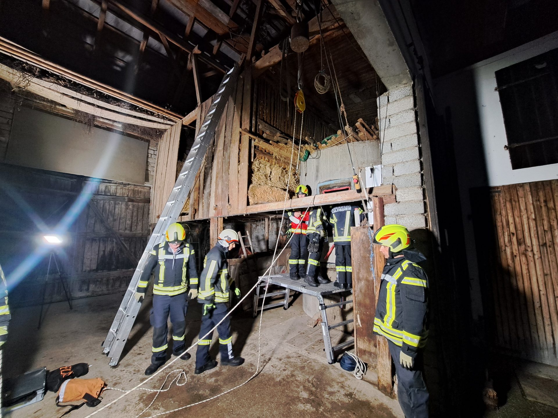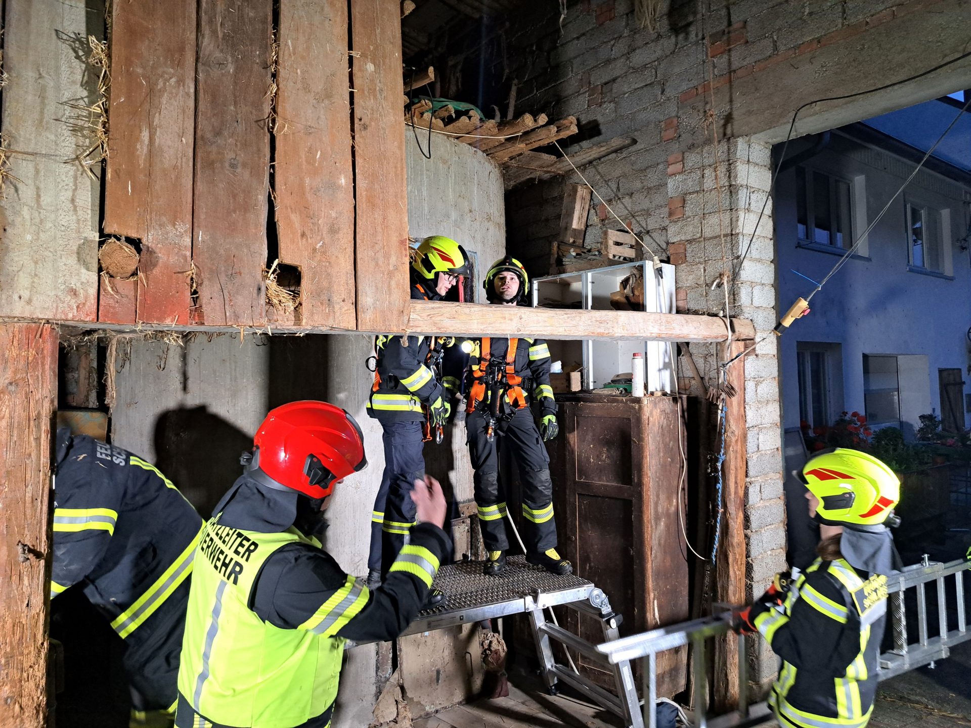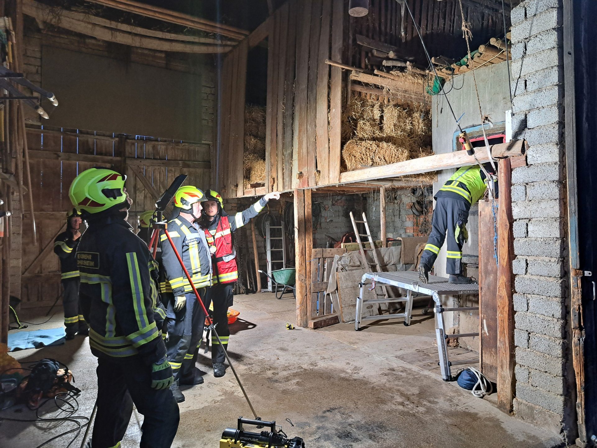 Simuliert wurde ein Unfall mit einer verletzten Person im Inneren eines Silos. Zuerst wurde die Rettungsplattform aufgebaut, damit konnten wir einen geeigneten Zugang zur Öffnung des Silos schaffen und einen ersten Blick ins Innere werfen. Nach Überprüfung der Luft im Silo mittels Gasspürgeräts, stiegen zwei Kameraden ins Silo, um die Person zu stabilisieren und die Rettung vorzubereiten. Besonders wichtig, war auch die Sicherung unserer Kameraden im Silo.