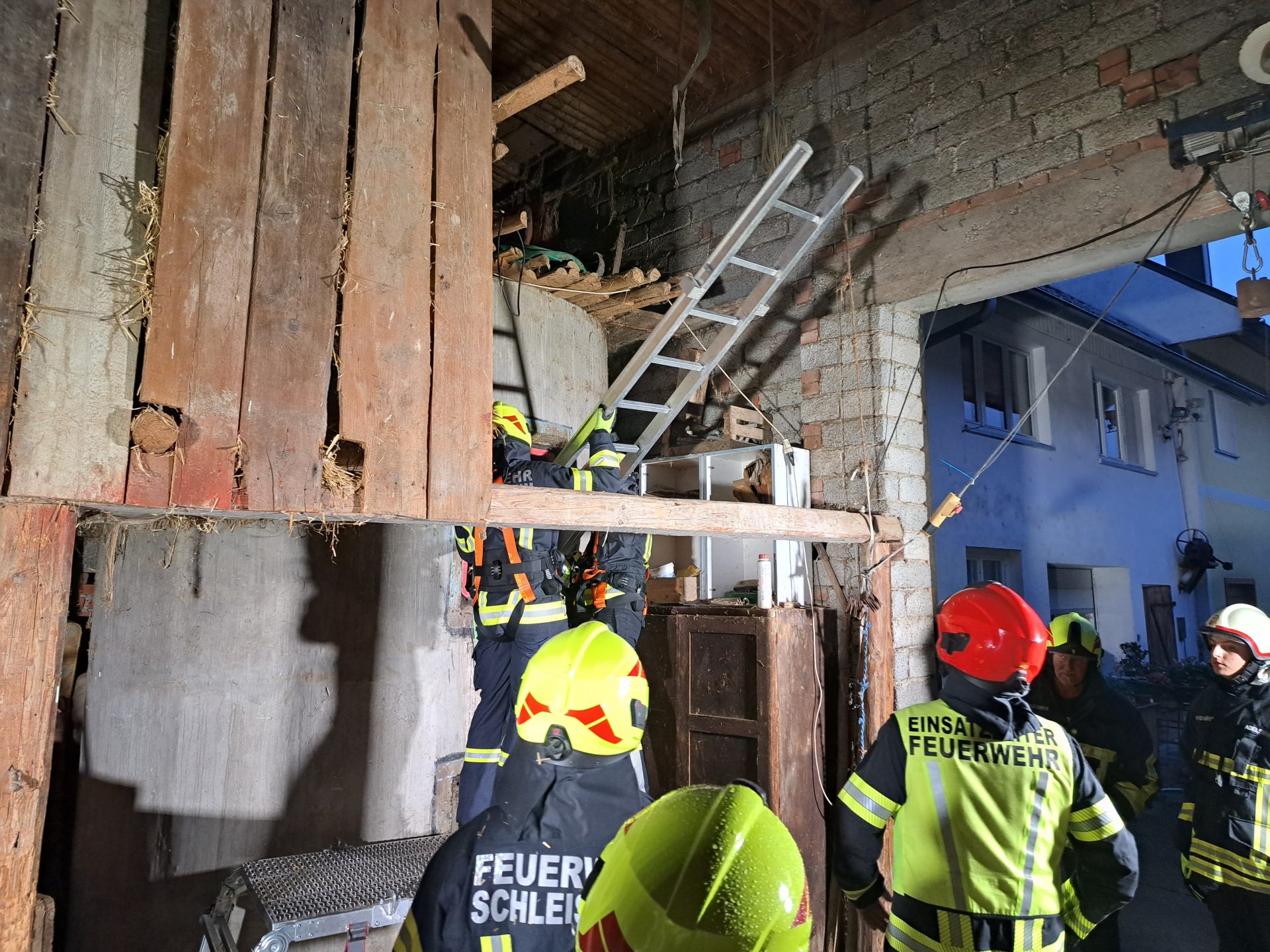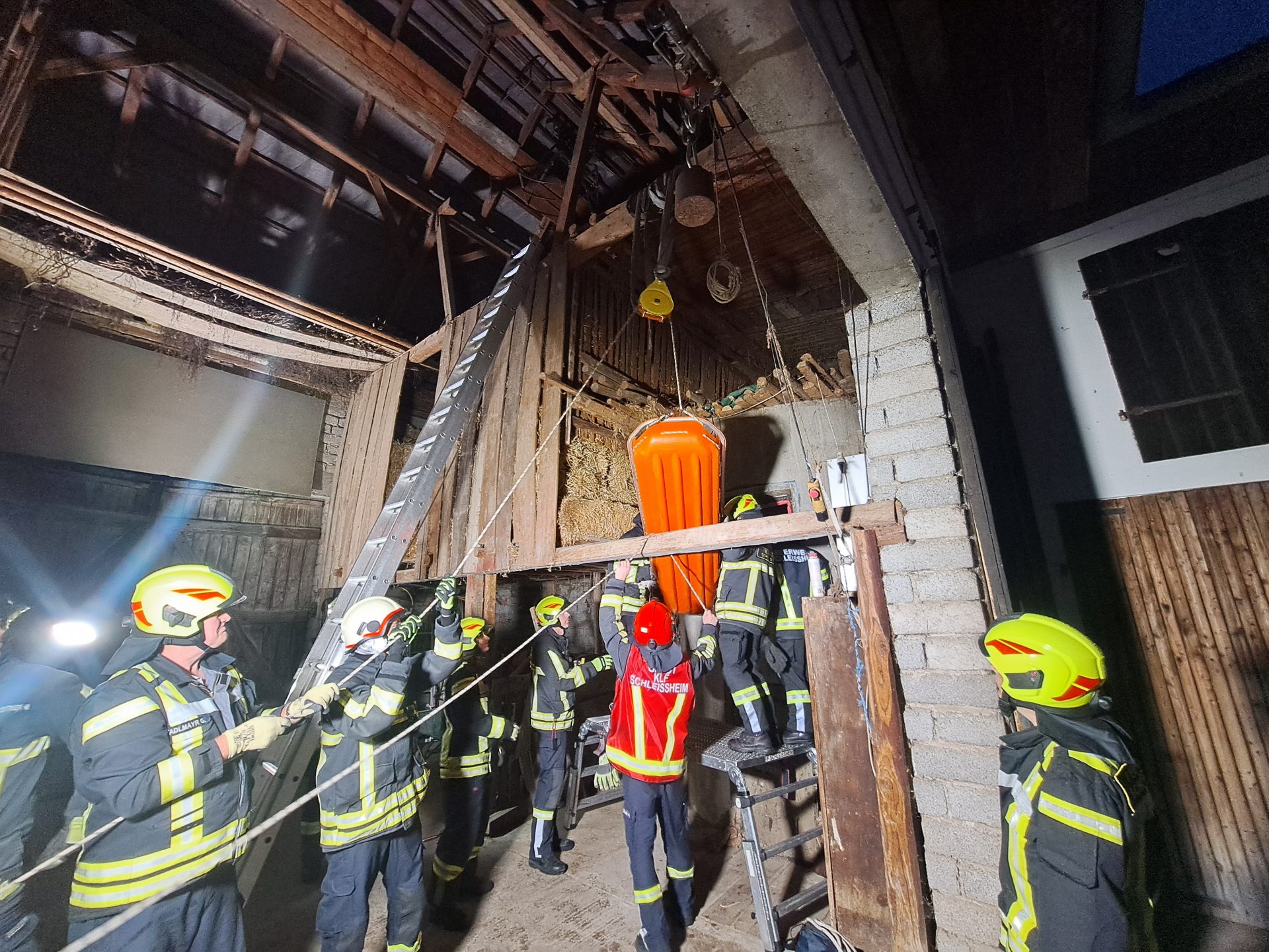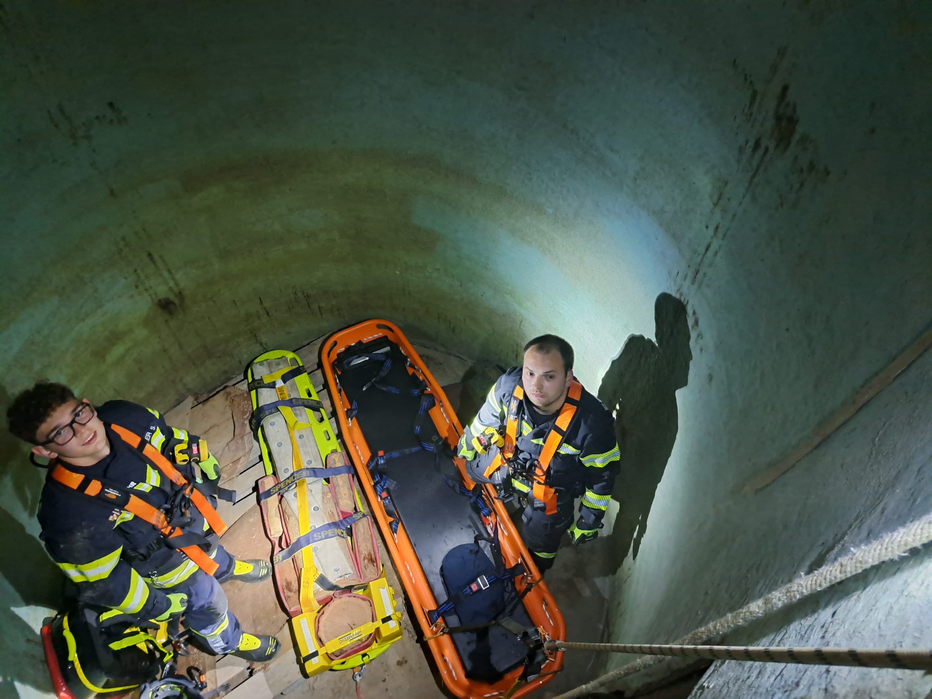Unter Verwendung von Spineboard und Korbschleiftrage konnte die verletzte Person sicher aus dem Silo befreit werden.
