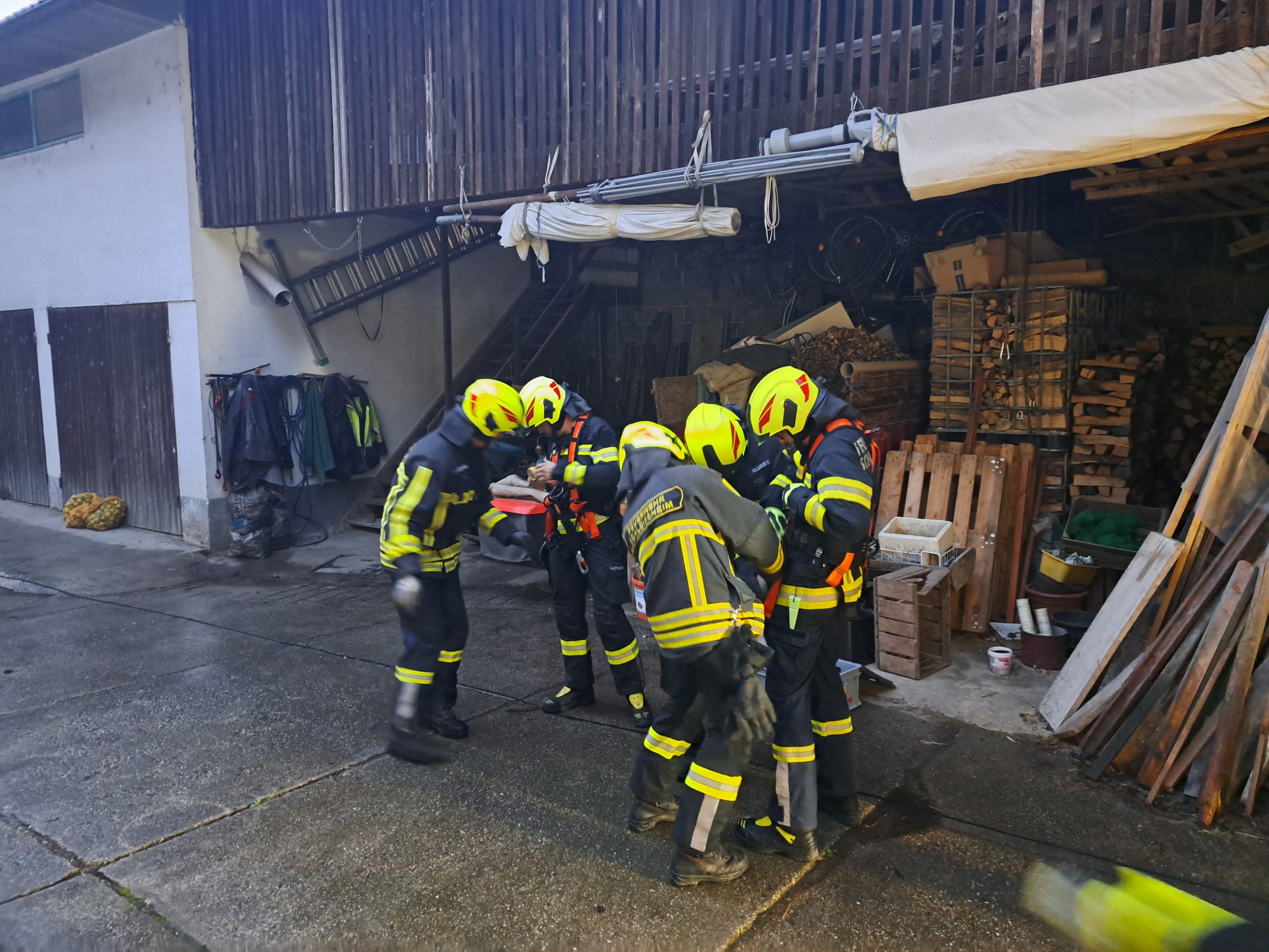 Unter Verwendung von Spineboard und Korbschleiftrage konnte die verletzte Person sicher aus dem Silo befreit werden.