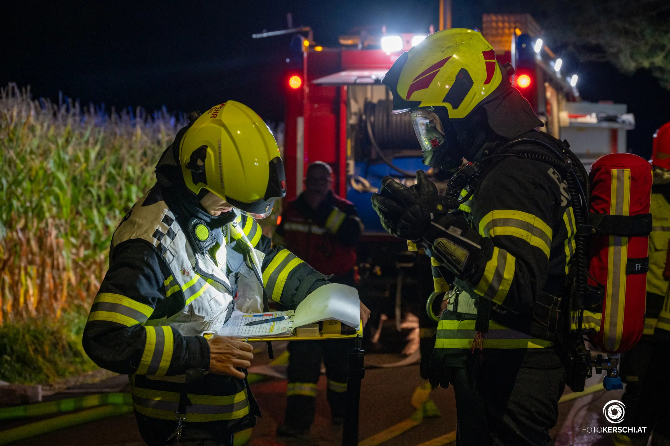Am 18.09.2025 wurden wir um 03:40 zu einem Brand eines Einfamilienhauses nach Thalheim zur Unterstützung nachalarmiert. Es handelte sich dabei um einen ausgedehnten Vollbrand der vor allem das Dachgeschoß des Hauses betraf. Wir konnten die Thalheimer Feuerwehren beim Innenangriff durch unseren Atemschutztrupp und von Außen bei der Schaffung von Zutrittsöffnungen unterstützen.
