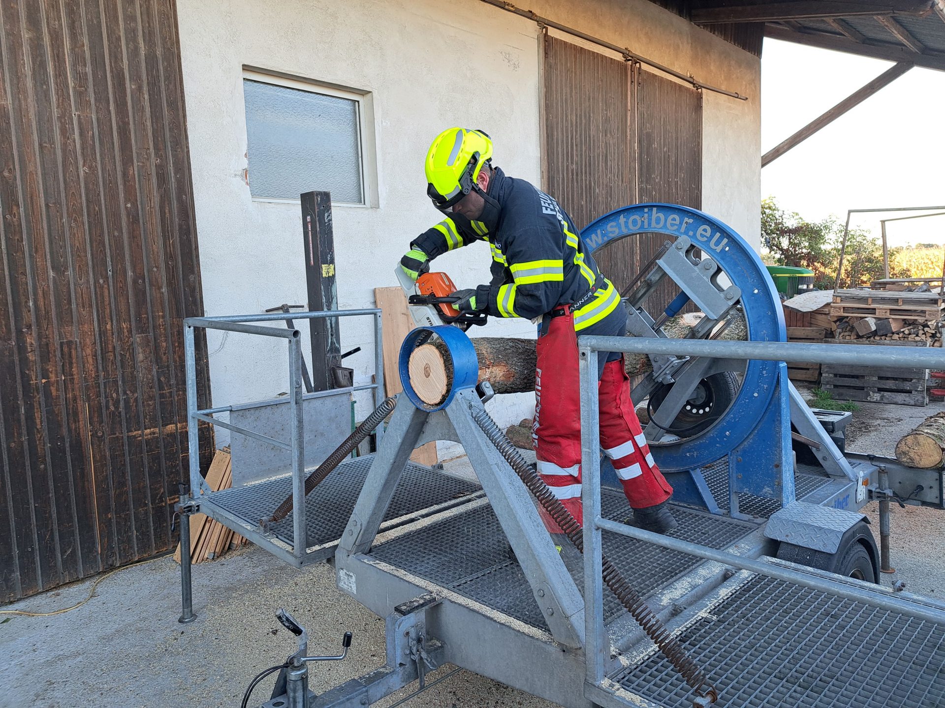 Der Fokus unserer Monatsübung lag im sicheren Umgang mit umgestürzten, verspannten Bäumen – ein häufiges Szenario nach Unwettern.