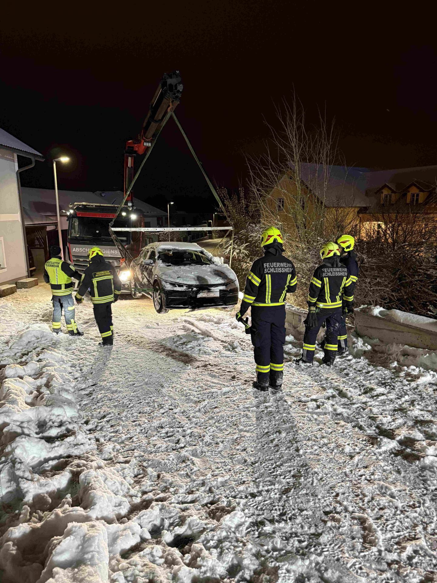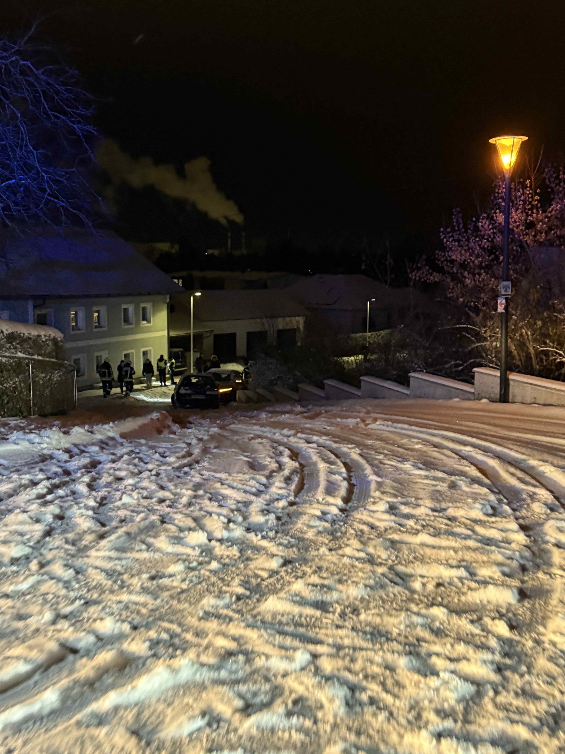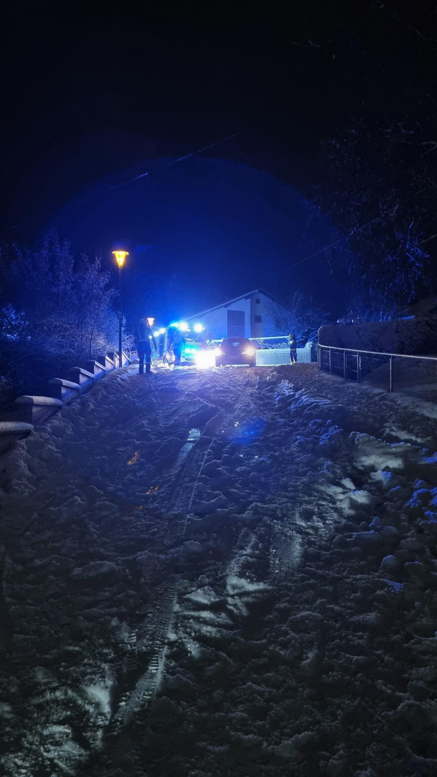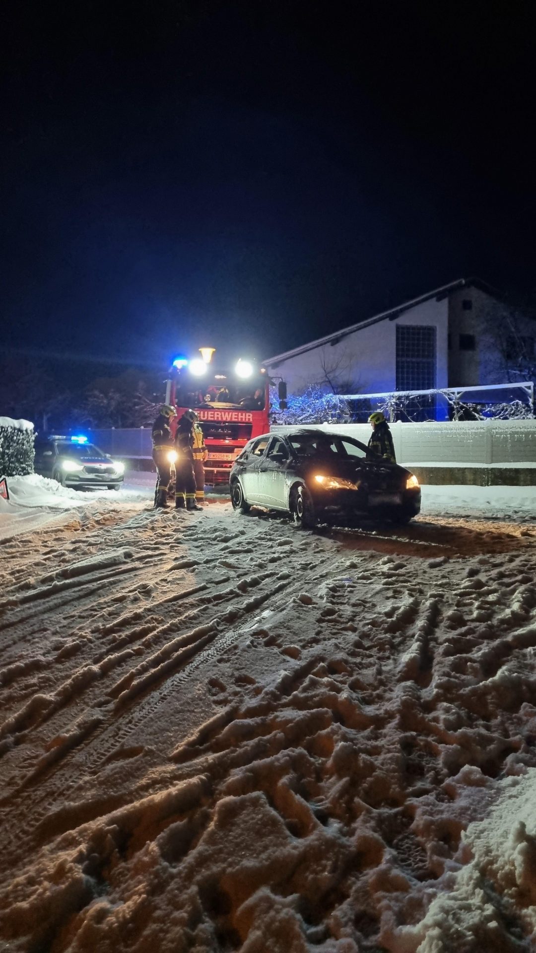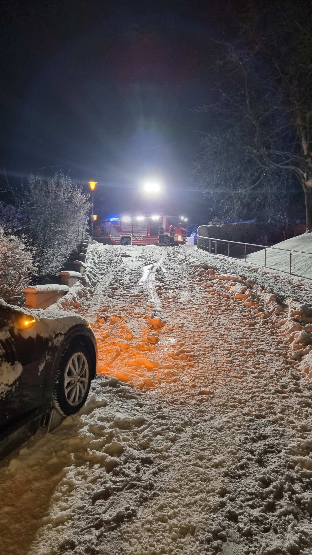 Kurz nach Mitternacht erreichte uns ein Anruf über unsere OvD-Nummer (Offizier vom Dienst), bei dem wir zu einer Fahrzeugbergung gerufen wurden. Aufgrund des starken Schneefalls der vergangenen Stunden rutschte ein PKW beim Versuch den Berg hochzufahren, zurück und blieb an einer betonierten Gartenmauer hängen. Kurze Zeit später wollte ein 2. PKW den Berg hinunterfahren, verlor dabei die Bodenhaftung und rutschte in das hängengebliebene Fahrzeug. Glücklicherweise wurden dabei keine Personen verletzt. Der zweite PKW konnte mittels Seilwinde unseres Rüstlöschfahrzeugs den Berg hochgezogen werden. Beim anderen PKW unterstützten wir den vom Fahrzeuglenker verständigten Abschleppdienst bei der weiteren Bergung. Nach Beendigung der Bergemaßnahmen blieb der extrem rutschige Straßenabschnitt zur Sicherheit weiter gesperrt.